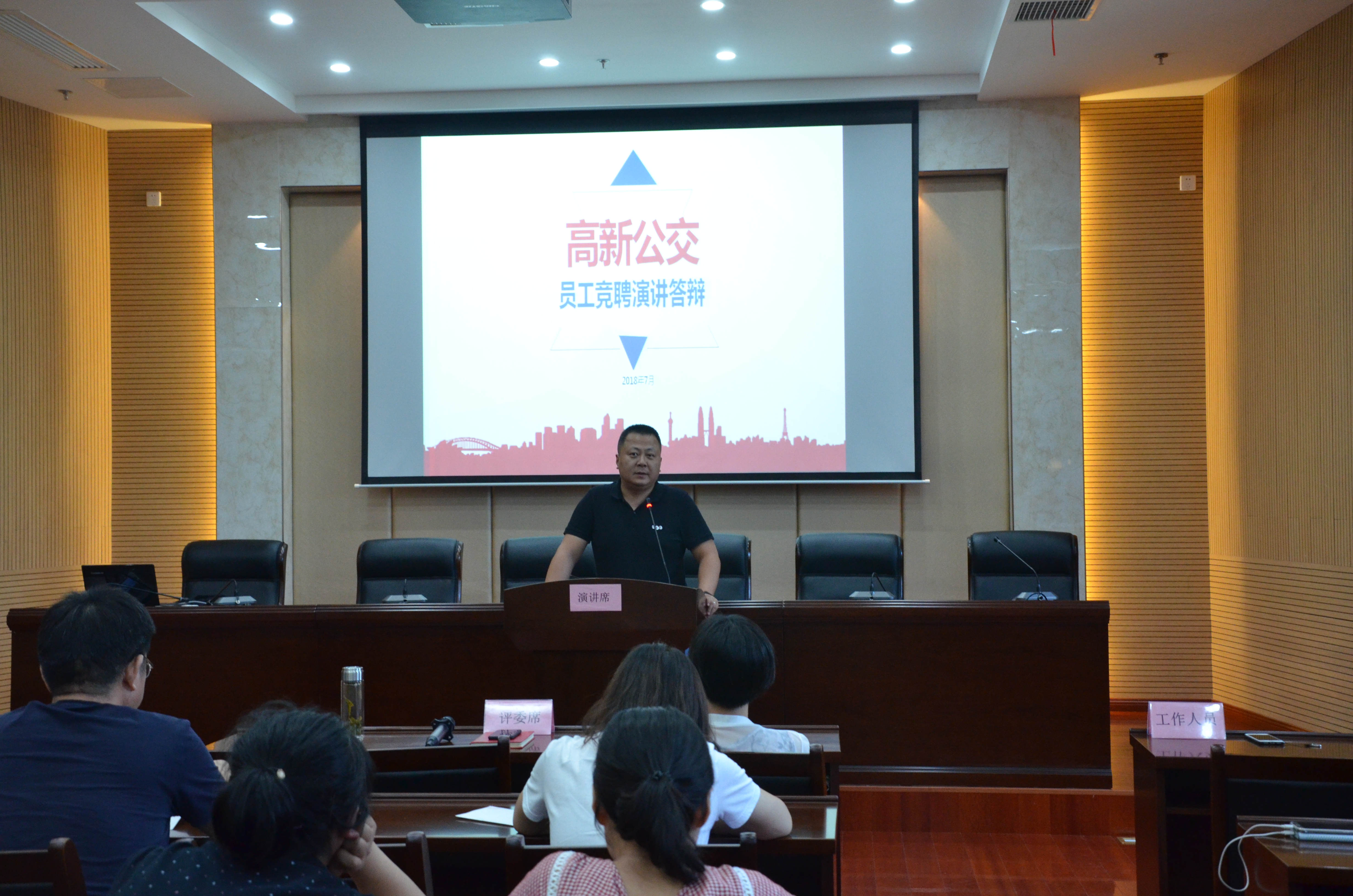 為建立能上能下、充滿(mǎn)活力的用人機制,擴大選人用人視野,充分調動(dòng)工作人員積極性,2018年7月19日下午,高新公交公司舉行法規稽查部主管崗位公開(kāi)選拔競聘會(huì )。公司領(lǐng)導、各部門(mén)負責人及行政員工參會(huì )。