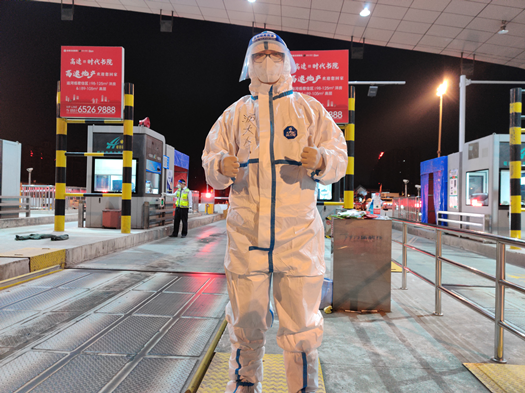 在集賢路高速路口,可以看到多名身穿“大白”的身影,他們穿梭在高速路口的各個(gè)道口中。當下,隨著(zhù)氣溫逐漸升高,身穿防護服、戴著(zhù)面罩的志愿者們,已滿(mǎn)是汗水,但他們毫不退縮,認真查驗相關(guān)車(chē)輛和人員。