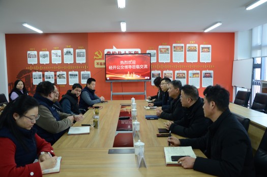 1月25日下午,經(jīng)開(kāi)公交黨委副書(shū)記、總經(jīng)理鄭曉松一行5人赴高新公交交流學(xué)習。公司黨支部書(shū)記、總經(jīng)理孔強、副總經(jīng)理王春夏、總經(jīng)理助理彭翔及各部門(mén)負責人接待并陪同交流。
