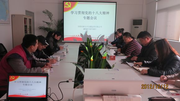 12月12日,高新公交黨支部按照高新區工委高新集團黨委統一部署,在組織集中收看開(kāi)幕式的基礎上,進(jìn)一步學(xué)習貫徹十八大精神及李兵同志在合肥高新區工委中心組理論學(xué)習會(huì )議上的講話(huà)精髓。