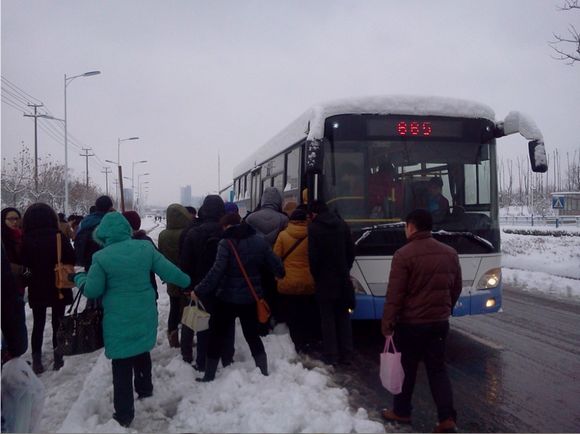 今日大地一片銀裝素裹,美了風(fēng)景卻難了出行,由于積雪太深,道路濕滑,行車(chē)難度大大增加,許多市民改變了平時(shí)的出行習慣,紛紛乘坐公交車(chē)出行,客流量激增。