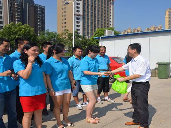 進(jìn)入七月下旬以來(lái),合肥驕陽(yáng)似火,氣溫節節攀升,持續高溫給奮戰在運營(yíng)一線(xiàn)的公交職工帶來(lái)嚴峻的考驗。為了給廣大駕駛員送去一片清涼、一份關(guān)愛(ài)。7月30日上午,工委書(shū)記、管委會(huì )主任李兵率隊,管辦、高新集團等領(lǐng)導在高新區工會(huì )的陪同下冒著(zhù)酷暑來(lái)到高新公交柳樹(shù)塘場(chǎng)站,看望慰問(wèn)在高溫下堅持工作的公交一線(xiàn)職工。