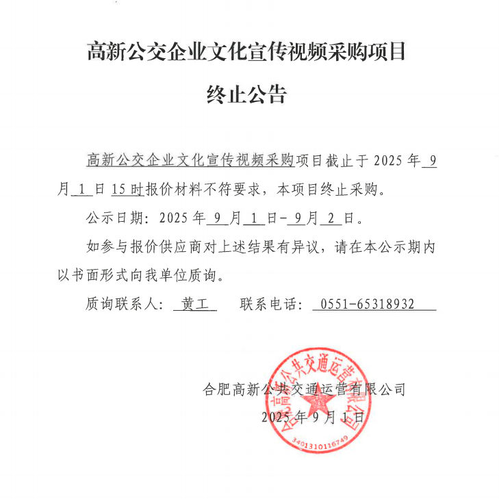 高新公交企業(yè)文化宣傳視頻采購項目終止公告